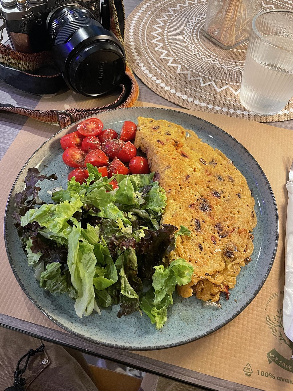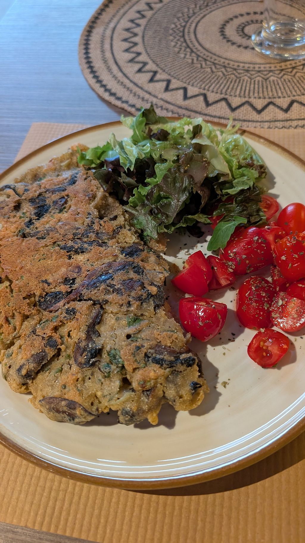 Delicious Chickpea Omelette w/fresh mushrooms and herbs