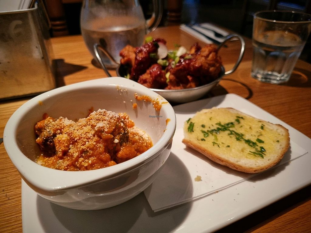 Aubergine polpette (foreground), crispy Korean cauliflower (background…