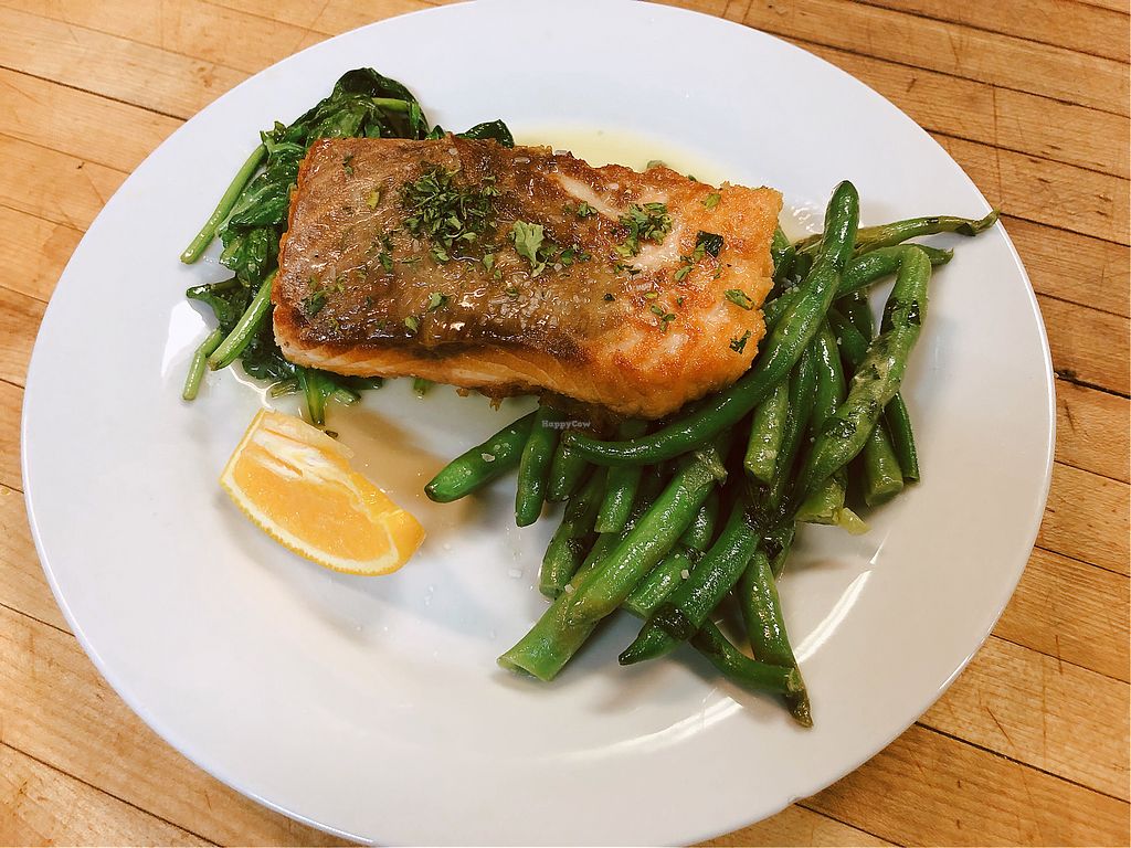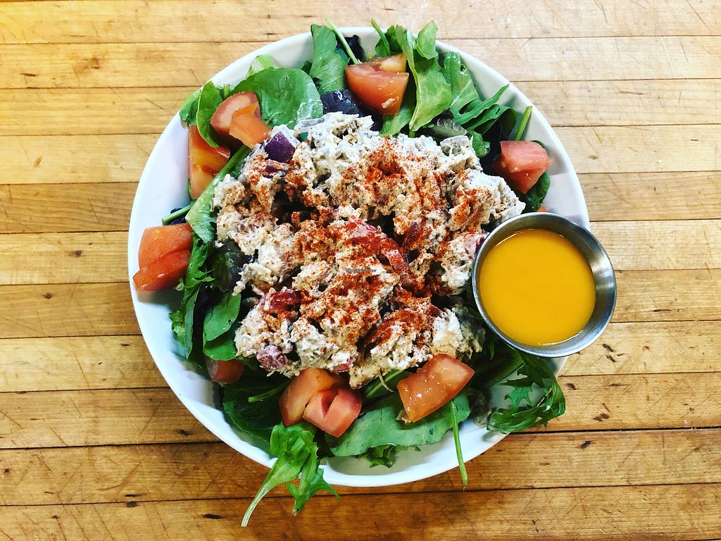 Serves meat, vegan options available. Cafe providing healthier meals to the community. Offers vegan choices like falafel wrap, raw salad, stir fried tofu with side of rice, stir fried vegetables with side of rice, and hummus platter with veggie sticks and pita. A couple of vegetarian dishes may also be ordered vegan by removing cheese. Under current ownership since 2019. NOTE: June '20 closed due to fire, maybe won't reopen.