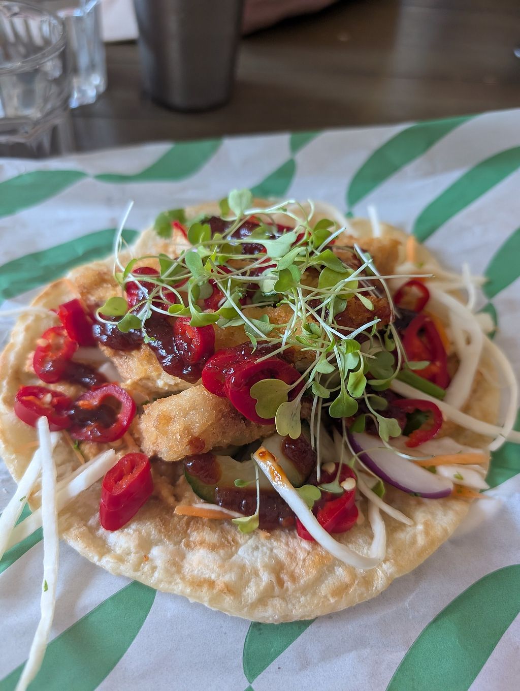 A lot of the vegan options seem to be the same ingredients rearranged. Had the tofu roti, it was ok but served on a piece of paper on top of a small bowl which was a bit odd, and made it difficult to eat. Very spicy! I think the Fried Vegan was a better choice. I would go back and try the tempeh bagel. The Spirulina smoothie was nice but more like a juice. Good choice for omnis so good place to go with a group