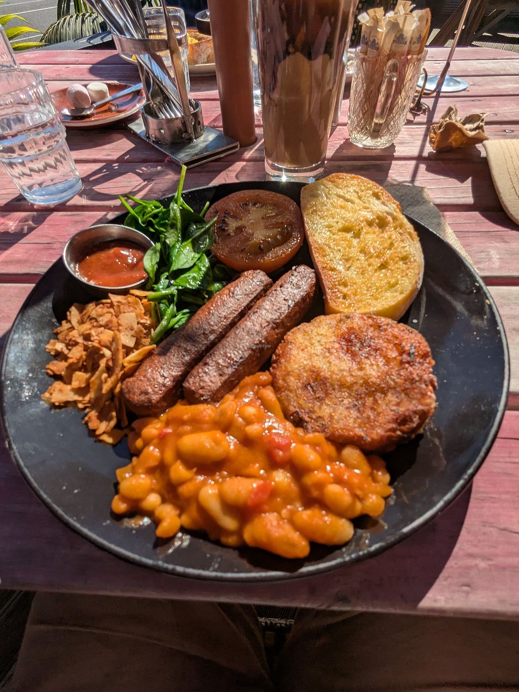 Pros: Home made sauces, Great vegan sausages, Good service in a nice locale