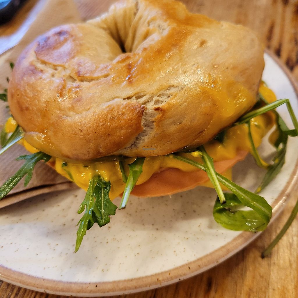 Such a disappointment. The I went for the vegan New Yorker. The menu, described it as being pastrami, smoked cheese, American mustard & gherkins. I sat at my table and I open the container (served in takeaway boxes), to a sad looking bagel with quorn ham, a square of plain vegan cheese, lots of American mustard & gherkins. The quorn ham was just awful, not a fan of quorn away, but there is some incredible meat subs including an excellent pastrami, and they used quorn, & a plain vegan cheese, when there are so many good options now! Bagel was mega dry and just crumbled. Definitely would not go back. Guy on the till was nice and friendly though.