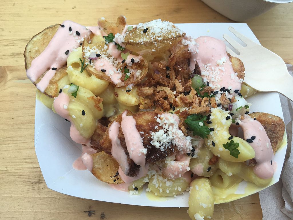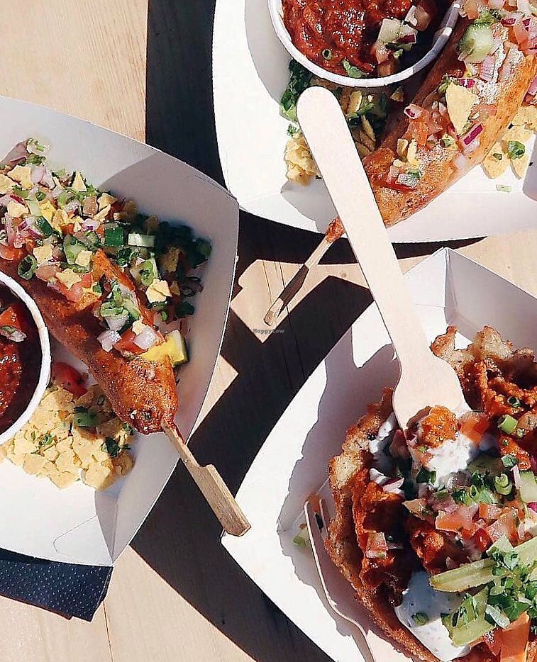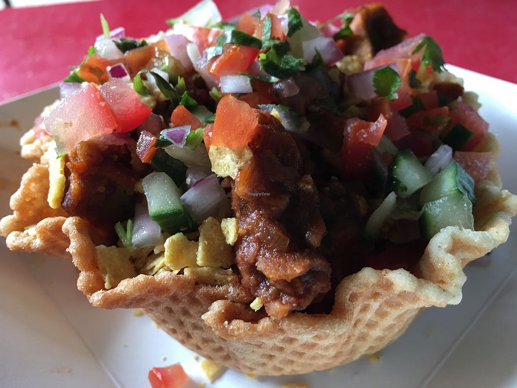chik'n waffle bowl with spicy buffalo and ranch dressing