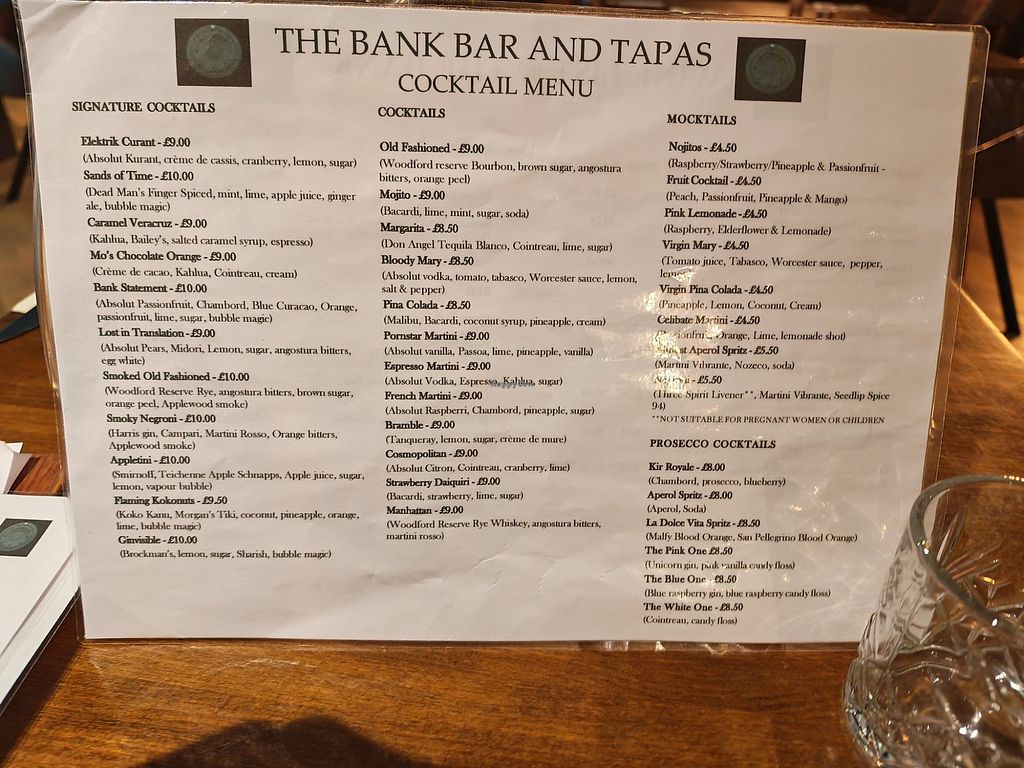 Cocktail menu