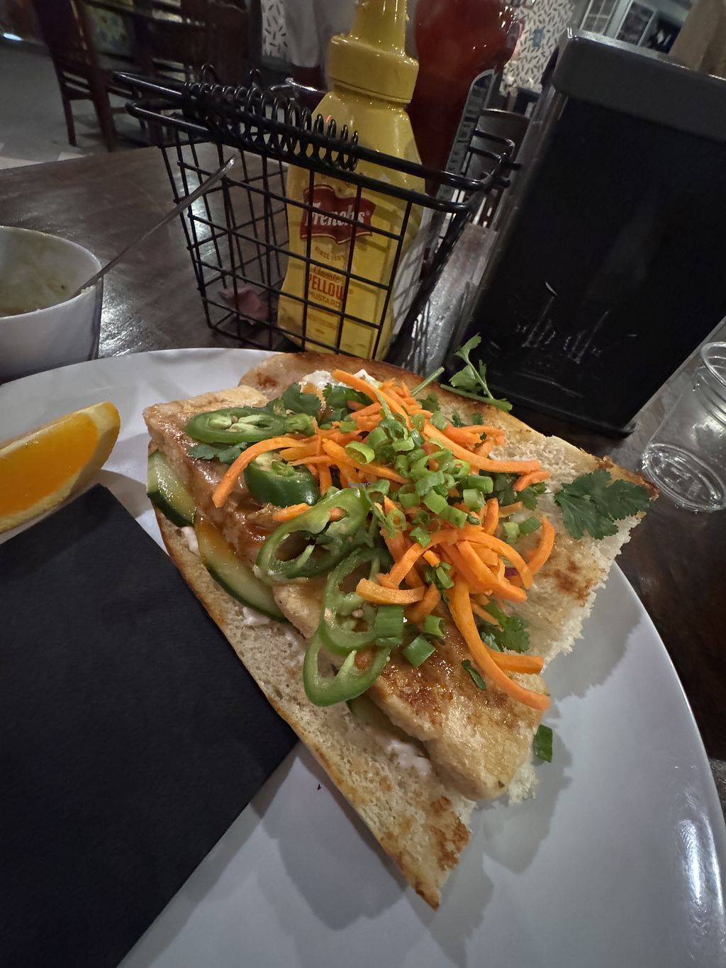 The Bahn Mi is full of flavors and very good. The fries are perfect, the cut and cook. I would recommend and can’t wait to have it again.