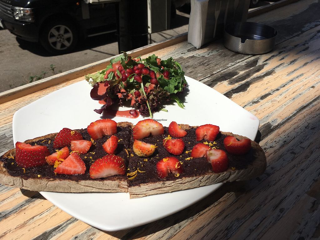 This is a great place for a vegan brunch. We had two 'toastees' - one with almost cheese, thyme, rocket and cherry tomatoes, the other with avocado, chopped almonds and chilli oil. Both were excellent. We also fancied something sweet and had one of the chia seed and mango 'quickies'. The coffee was also decent. There are loads of vegan options other than the dishes we ordered.