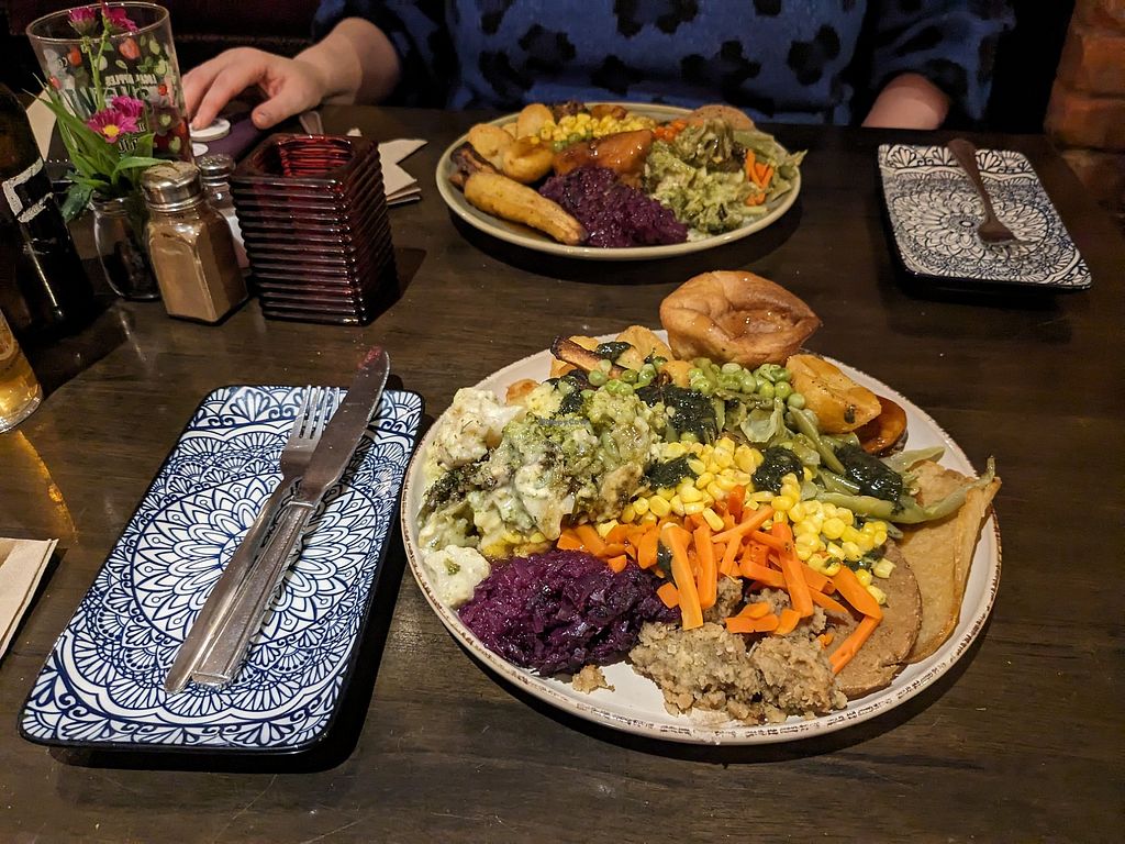 Banana & sticky toffee pudding (they had vegan whipped cream and cream…