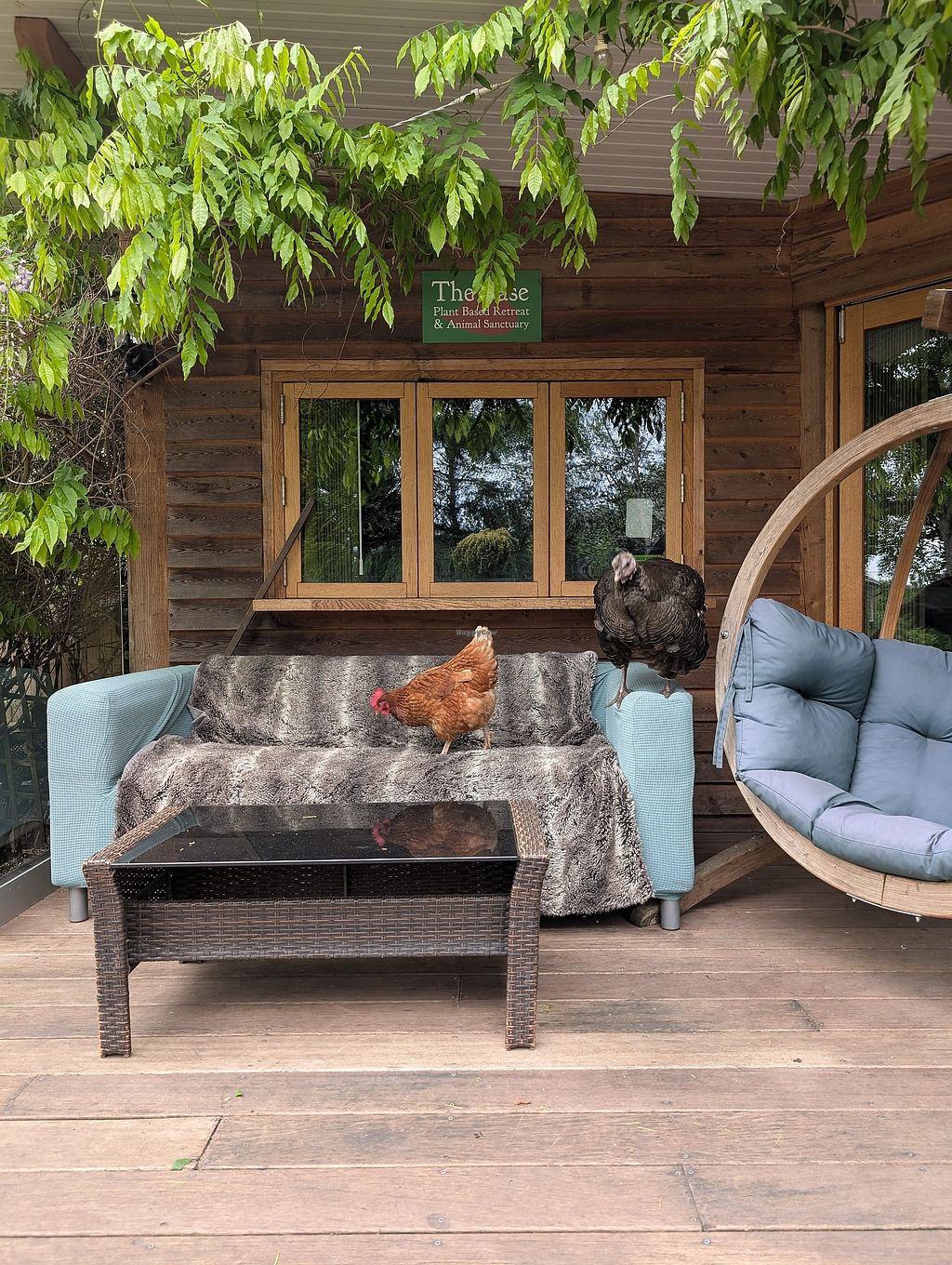 Me and my wife absolutely loved our visit to The Base! The retreat consists of a house with several double rooms and a big garden which is home to rescue ducks, rabbits, turkeys, chickens and guinea pigs. There is also a cabin in the garden which has two double beds and it's own bathroom and kitchen, and this is where we stayed.