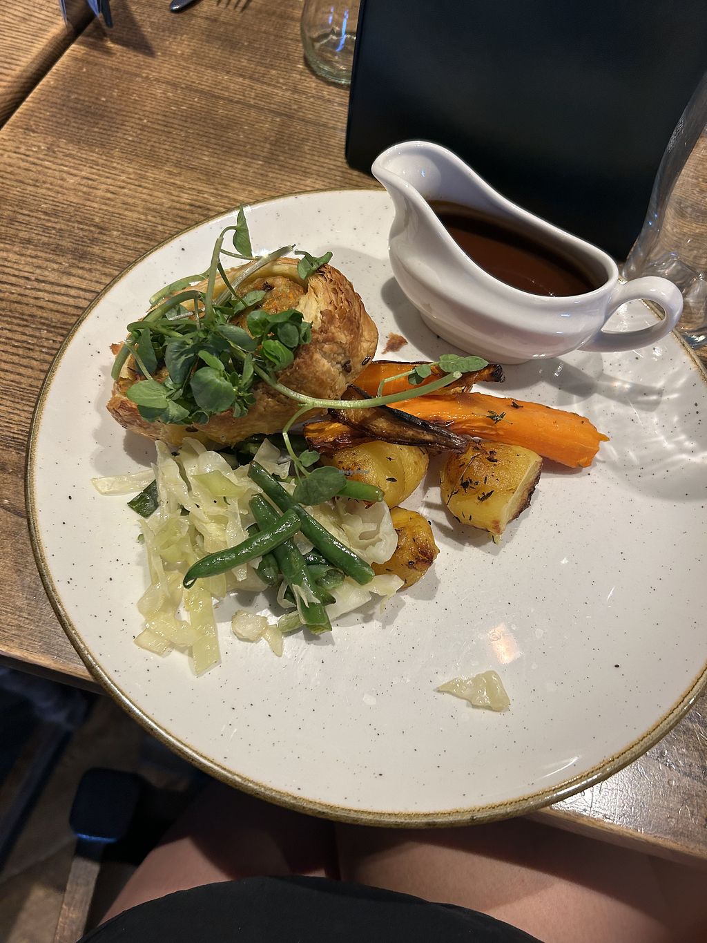 Went for the vegan Wellington. The food was nice. The staff were very friendly. However, the portions very small and £18. Limited vegan options. Only pudding option was sorbet. I would unlikely go back.