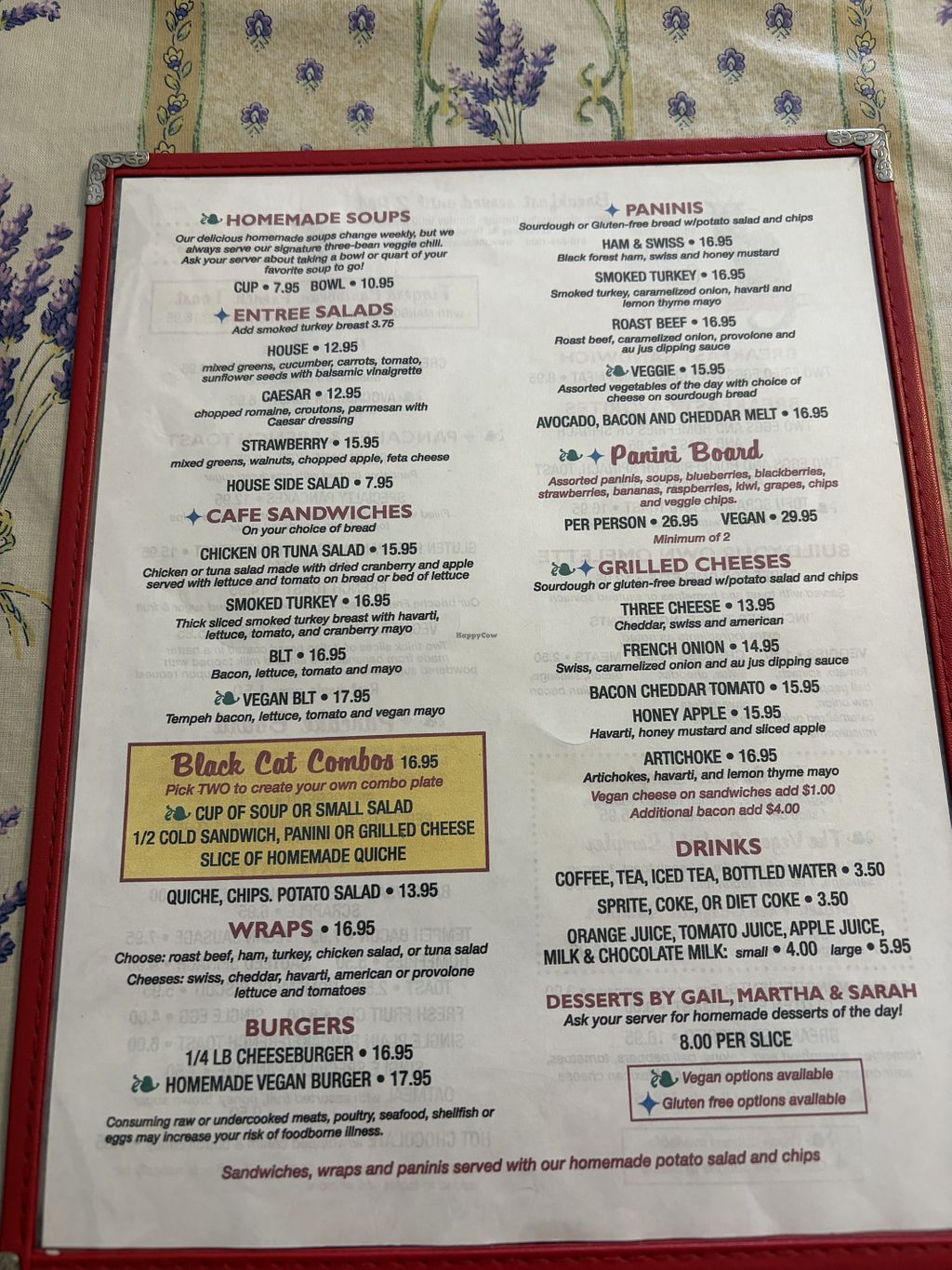 Everything clearly labeled. Almost everything is available either vegan or gluten free. Took my partner & friend with celiacs here and we loved it. Absolutely delicious and supports the kitty cats!!! 🐈⬛🐈⬛🐈⬛ Also they have ice cream at night!