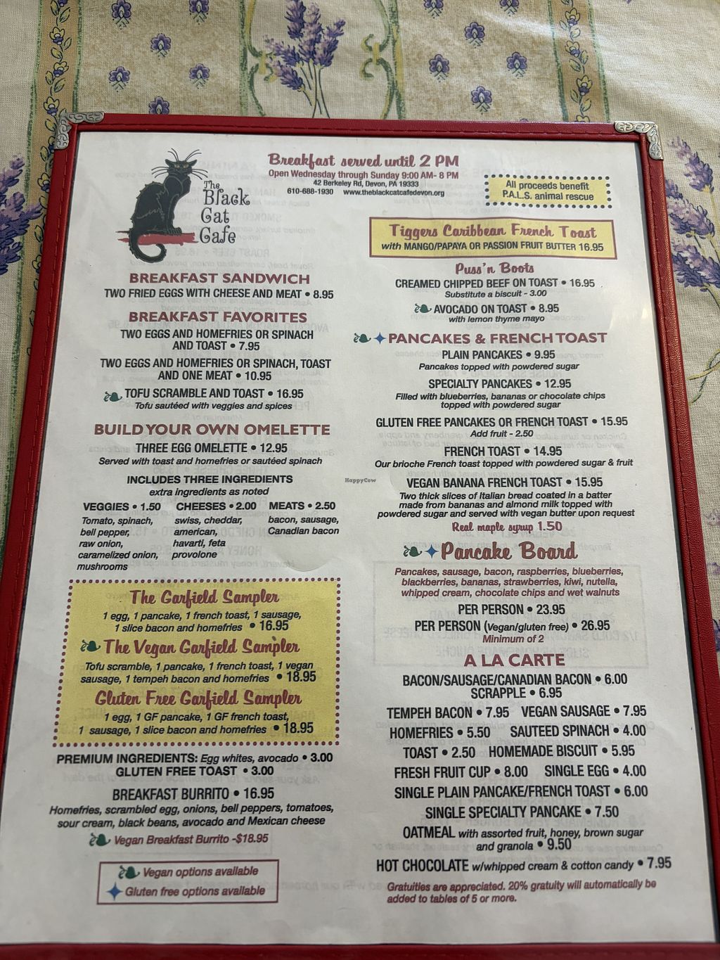 Please support this awesome restaurant. Not only to all the proceeds go to the PALS animal rescue, but they actually have cats in the front area for adoption! They have wonderful vegan options and their breakfast is amazing! They also just started an ice cream parlor from 200-900pm everyday with vegan ice cream sundaes, milkshakes and more! Also, homemade vegan burgers for dinner.. I could go on and on, just go!