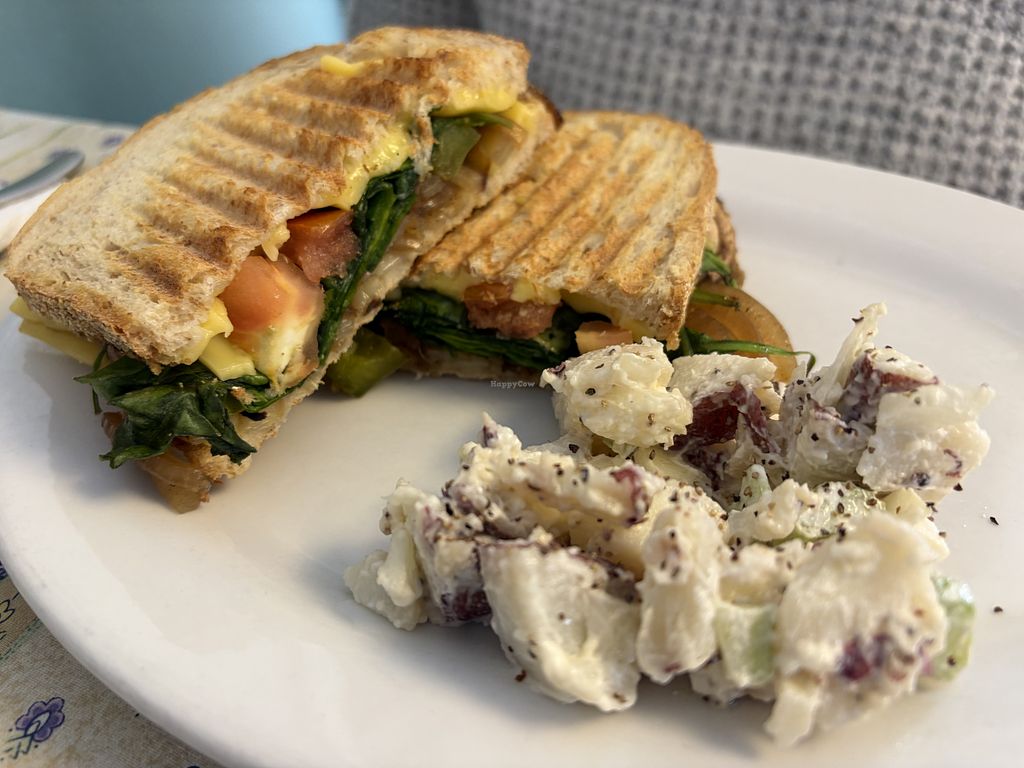 There are a few vegan options and they are pretty tasty. The vegan breakfast burrito and the vegan French toast are delicious. They have non dairy milk options for coffee. It’s a good place to go with non vegan friends and all the proceeds go to PALS. All the staff are volunteers. We talked to the owner and she was interested in providing more vegan desserts if the demand changes. Also the only bread that is vegan is the sour dough.
