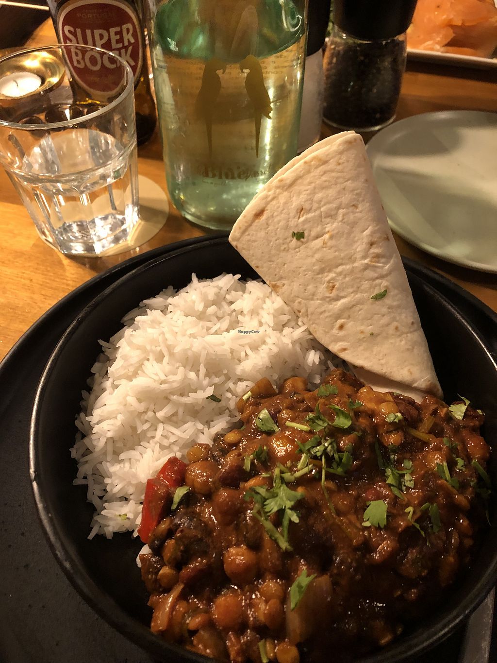 Lentil Chili (get without yoghurt) & a Green Smoothie in the backgroun…