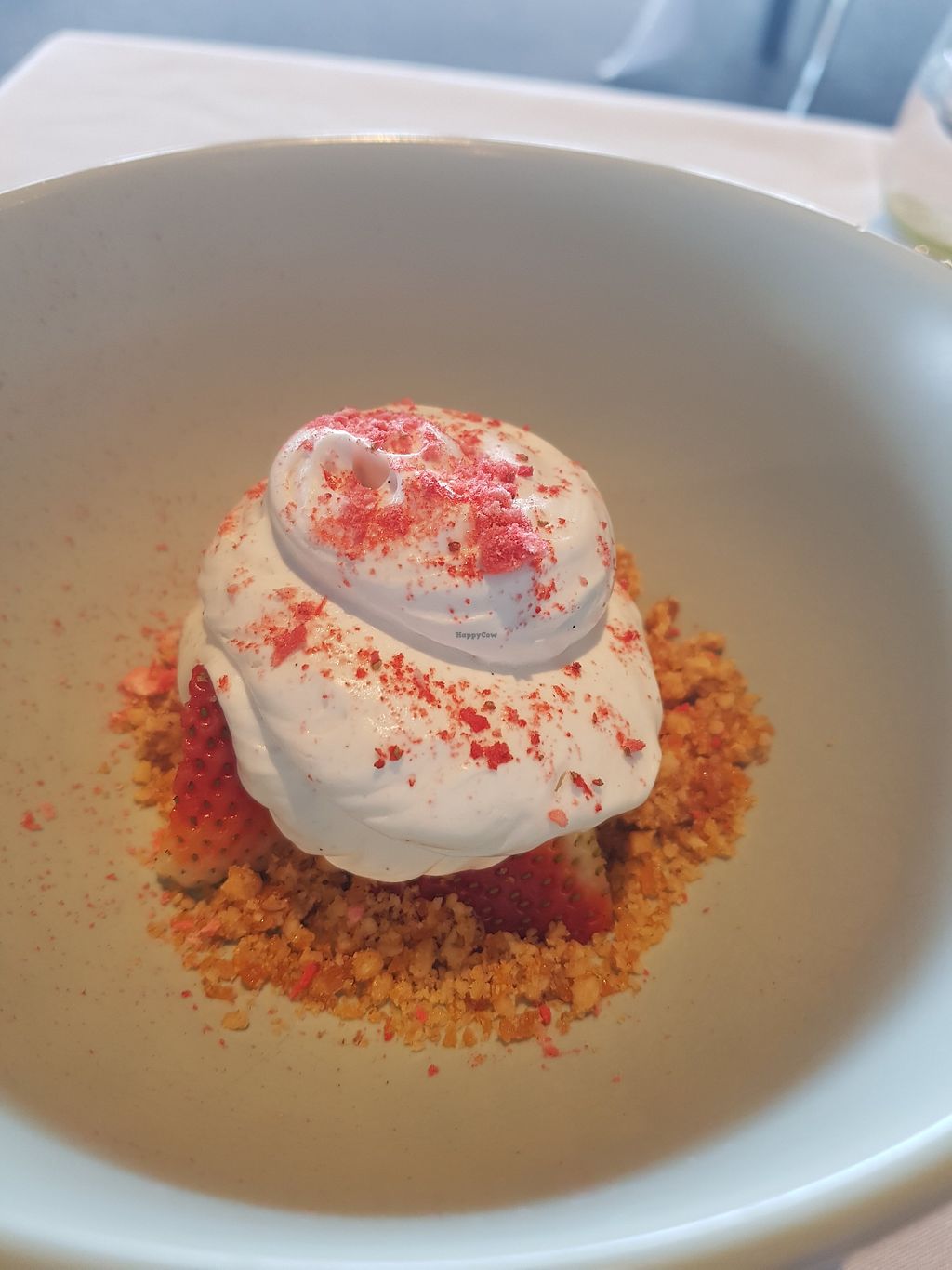 There are typically no vegan options on their menu; however, I've never found this to be a problem as they prepare a 2 or 3 course vegan offering and it's always been fabulous! The wait staff ask at the start if there are any particular foods you strongly dislike, so there is a little bit of say there but I enjoy the adventure and an opportunity to try things I otherwise might not. Fabulous food, service and location - a great option for special occasions.