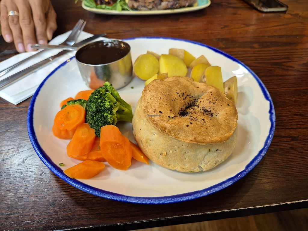 Lacto Ovo Western Beer/Wine Non-veg Serves meat, vegan options available. English pub and restaurant with vegan choices. Menu is clearly labeled and includes vegan Meatball Sandwich, mixed salad, pea and courgette risotto, katsu curry, tomato salad and more. More