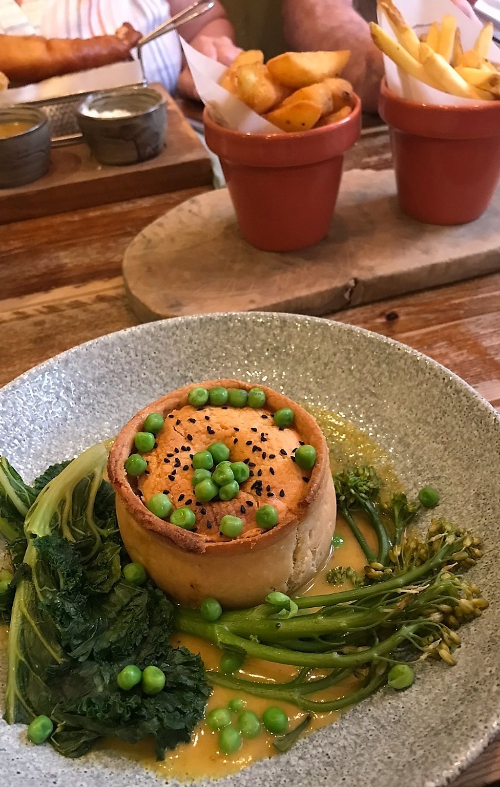 The service was nice and the server helped us. There are a few vegan options and there is always a pie available. On sundays they also have a vegan sunday roast. We tried the pie and the burger and they both exceeded my expectations