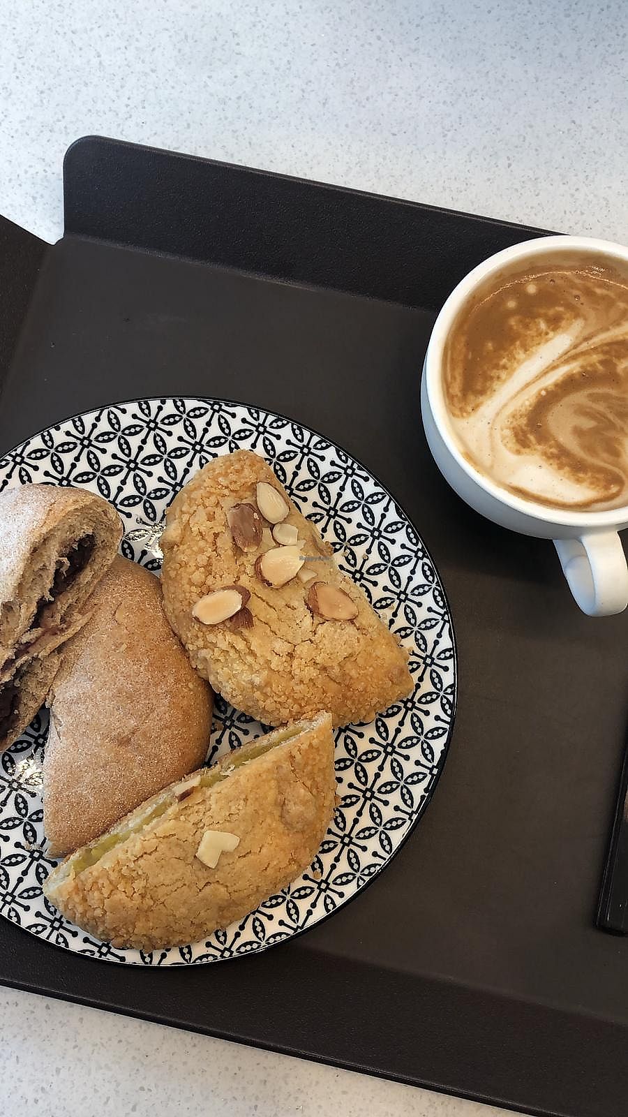 red bean and almond breads and an almond milk coffee recommend if your…