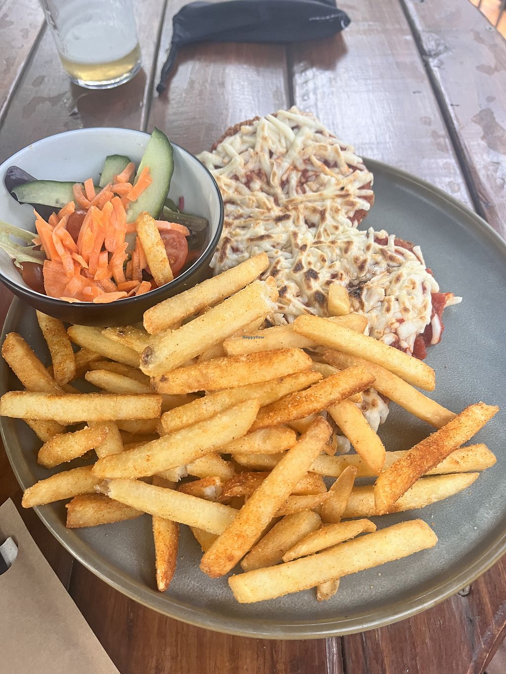 Read moreTheir vegan schnitzel is much what you can buy at the supermarket for a quarter of the price. They have a cauliflower parmi which is an experience, but not a good one. Basically a slab of the middle of a cauliflower battered with parmi sauce on it, a good way to reuse an often thrown out part of the cauliflower but about as plain as the often thrown out bit of cauliflower might taste. Also, $28 is a bit steep for a slice of cauliflower, would think they make enough money from their pokies.