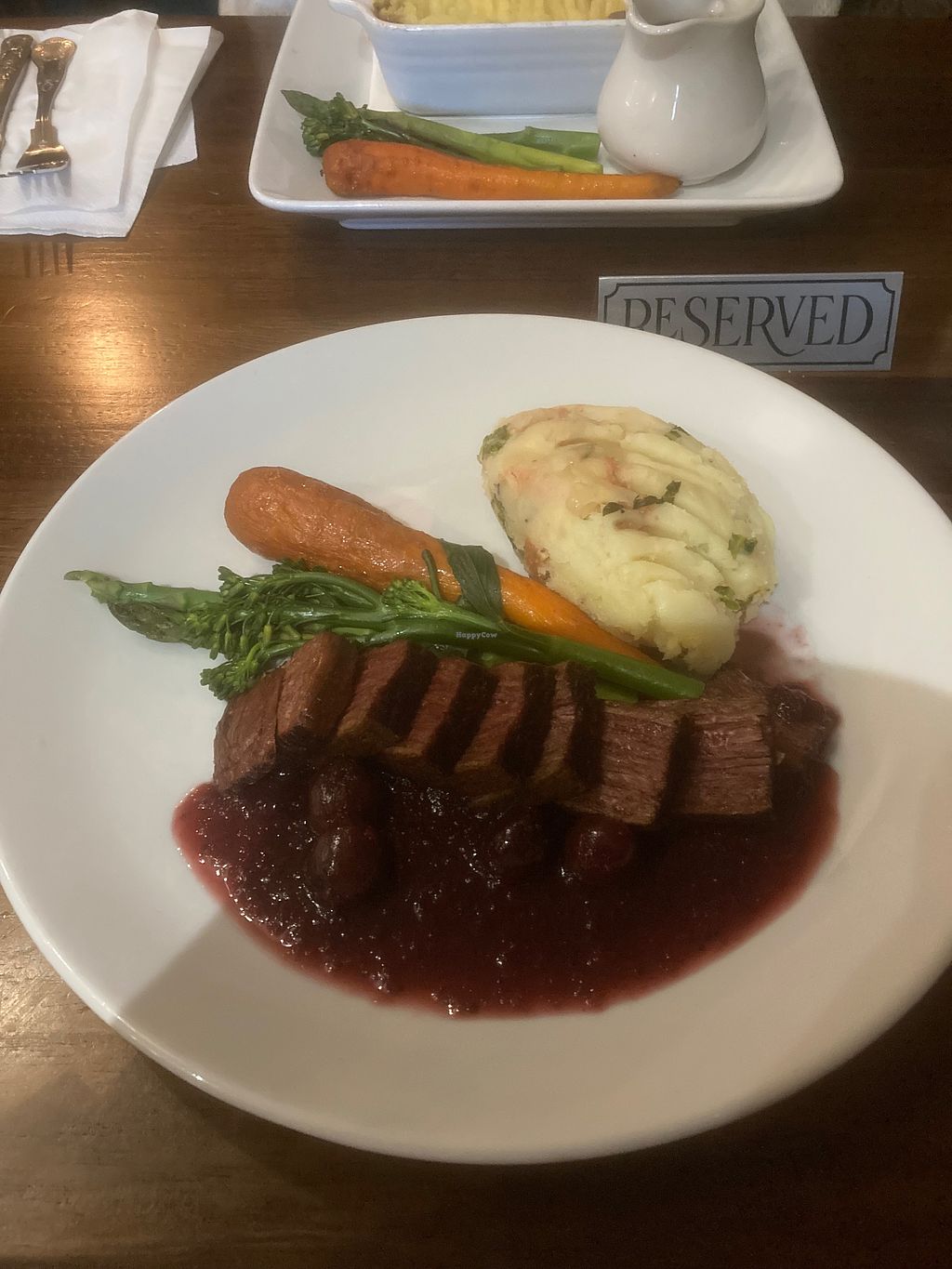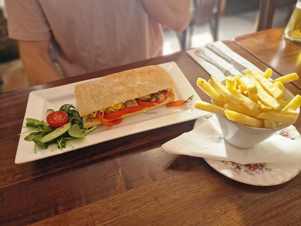 Had a vegan dinner there the other day and was lovely! The meat substitute was a ‘fake’ chicken breast and it was tasty’ come with all the trimmings (minus York pud) and enjoyed every bit!! Would recommend. They have a fully vegan menu there too for other days