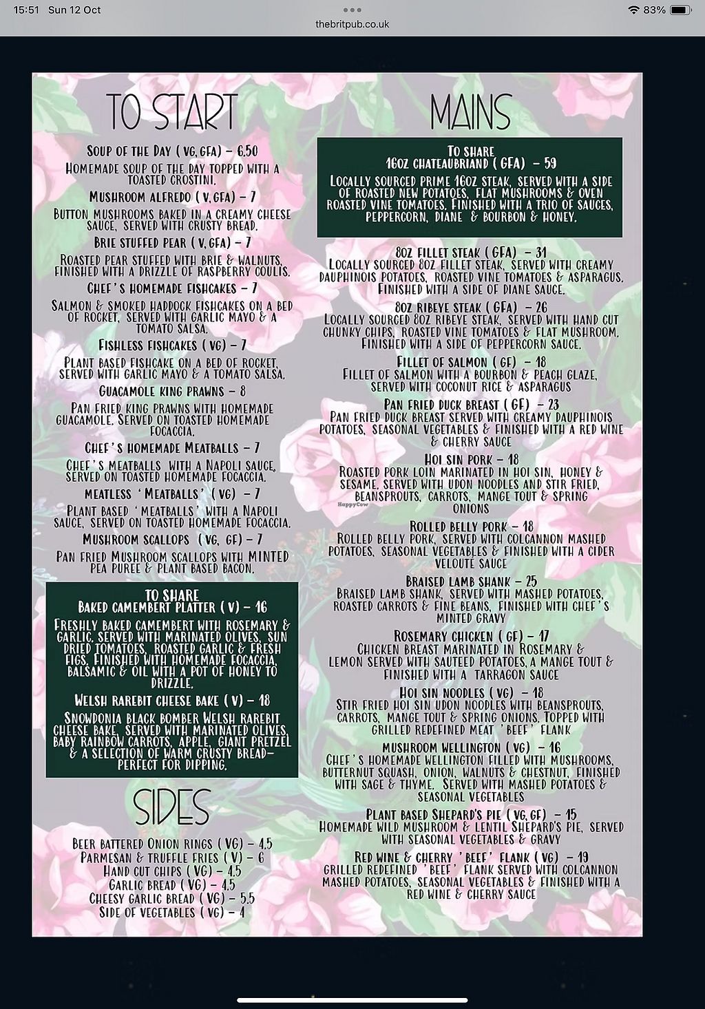 The vegan menu is delicious especially the Sunday lunches and the homemade brownies and ice cream. The Brit staff are friendly and can not do enough for you, its also dog friendly so all the family is welcome. In the winter the log fire burns in the bar, this is a great area to eat after a nice winter walk with your dog.