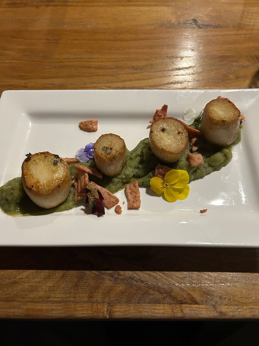 Seen the menu on Eat out vegan Wales, and thought wow but will it be any good! Nice and easy to book, quite busy when we got there but excellent service from Vegan owner Owen and Kelly behind the bar, I opted for the King Oyster Mushroom scollaps with fresh mint pea purée and vegan bacon! So tasty absolutely loved it, then for mains I had the plant based steak in cherry and red wine sauce, we also had the shepherds pie! Both were so flavour some, the cherry sauce was outstanding! Room temperature lemon tart for dessert with an Americano, what was great that the 3 tables around us 5 meals completely vegan only one not! Would definitely advise booking for an evening meal! Superb!