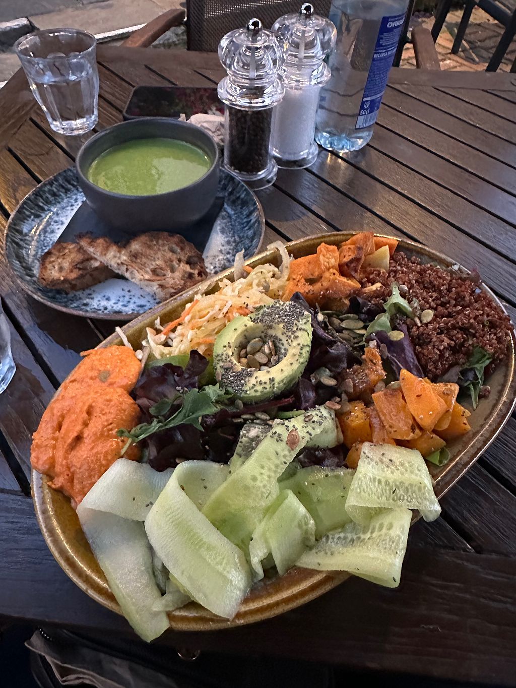 Pea soup on the background was delicious