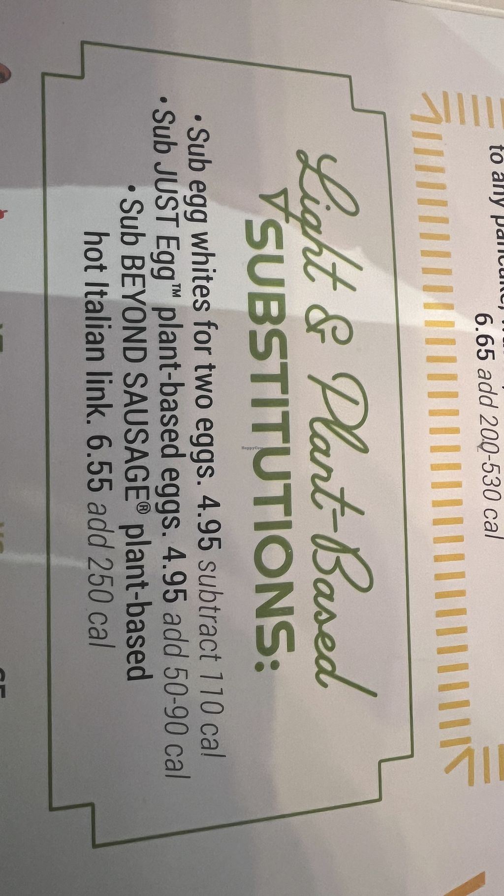 Read moreThey also offer to sub just egg or beyond sausage with most meals, but it seemed like it would be too many substitutions to make their existing dishes vegan.