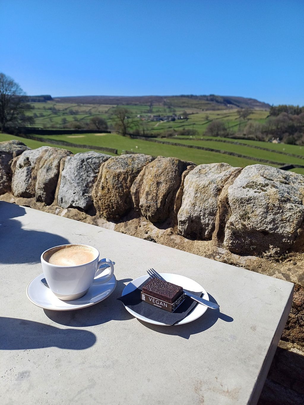 We've visited the Brownie Barn several times when walking in the beautiful surrounding area. There is a great terrace here with a simply amazing view across the landscape, where you can sit and enjoy both the view and the treats on offer. There is a good selection of vegan brownie flavours (e.g. coconut, orange, raspberry, mint, cherry, double chocolate, honeycomb), as well as Northern Bloc ice-cream. Both are clearly labelled as vegan, and the staff seem totally aware about the vegan options (which they say are very popular there), and are helpful too.