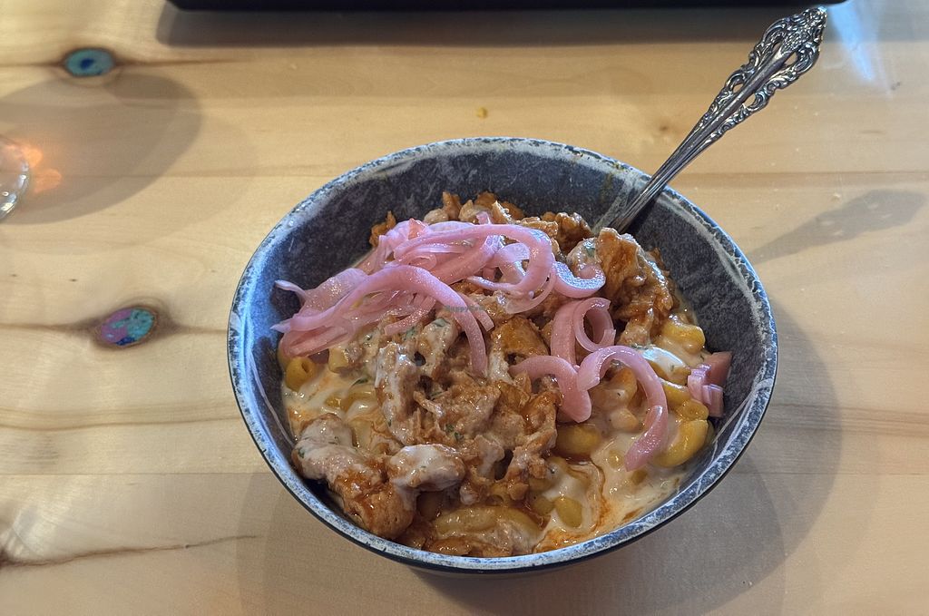 I had Mac bowl and I was little food for the price, also wasn’t impressed with the taste. The chimichanga (I think) plate was good though. Good cupcake! They allow pups on patio and brought us water for them too.