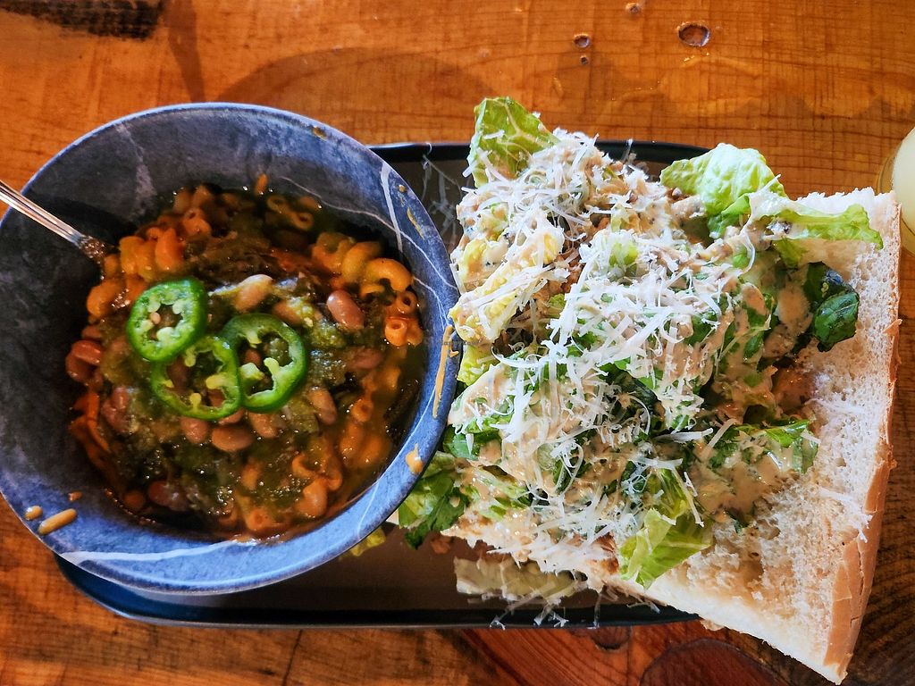 French Dip and chicken Caesar salad