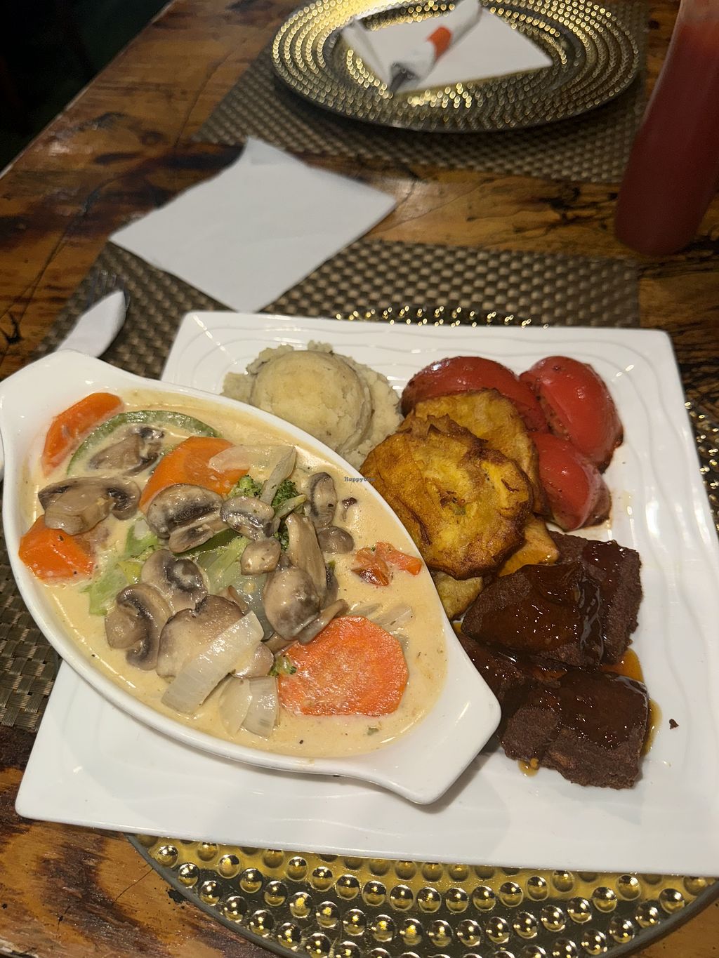 Friendly staff. Tasty plantain. Large portion, meat substitute was delish not sure what it was but it wasn’t beyond which was great.