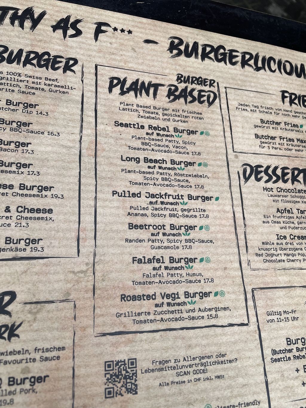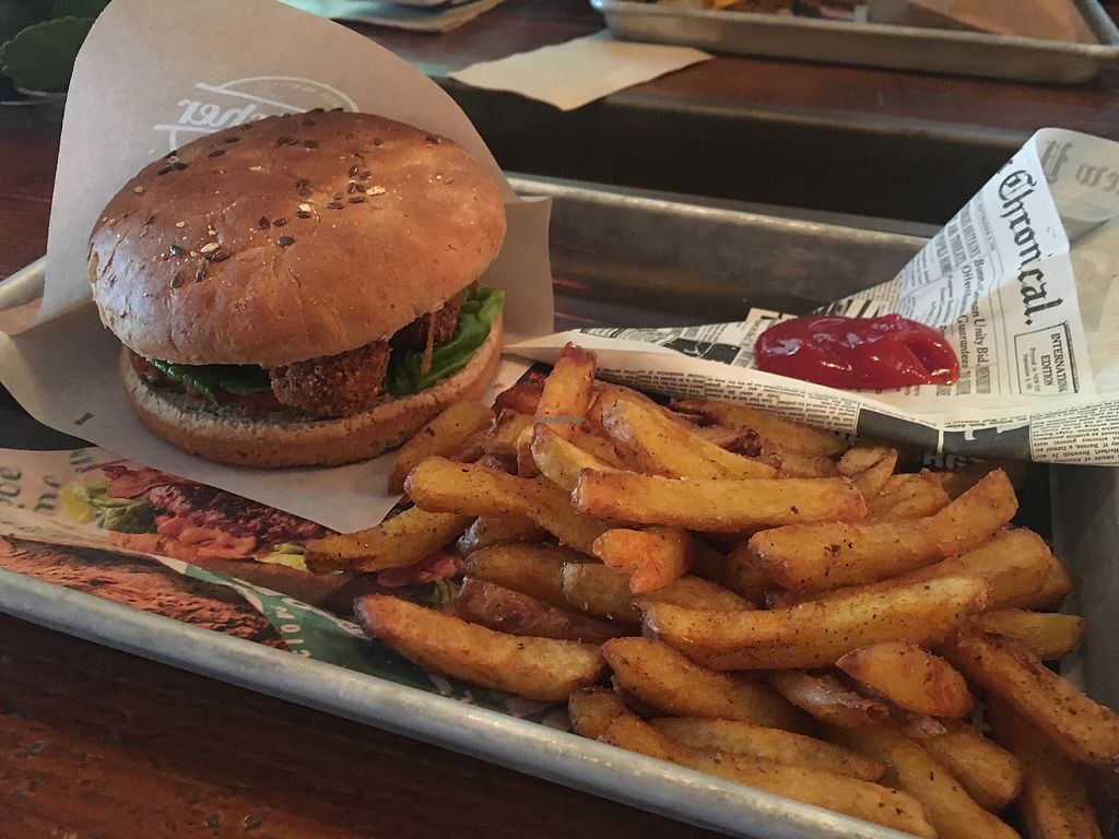 Vegan falafel burger. One of two vegan burgers on the menu. Also have …