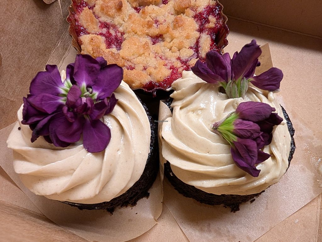 They have a lot of unique flavors! I stopped in for a quick sample and got chocolate tea cakes; the cupcakes were moist and the vegan buttercream icing was so creamy! I also got a berry crumble which had just the right amount of tart and sweet. Unfortunately, when I tried to order a vegan cake for my birthday, all of the vegan options were listed as "sold out." I do hope to get another chance to order a whole, vegan cake.
