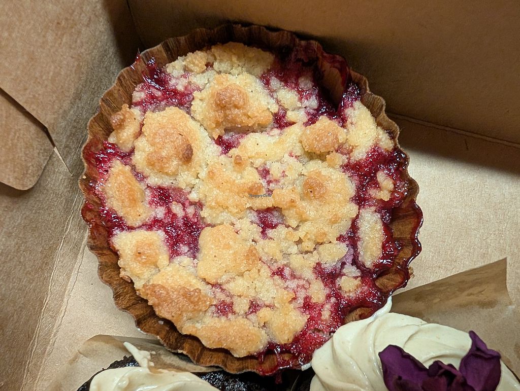 Always solid vegan options here. Great atmosphere if you want a chill place to grab dessert and a coffee with someone. We had a blueberry cake, chocolate peanut butter cupcake and a strawberry crumble.