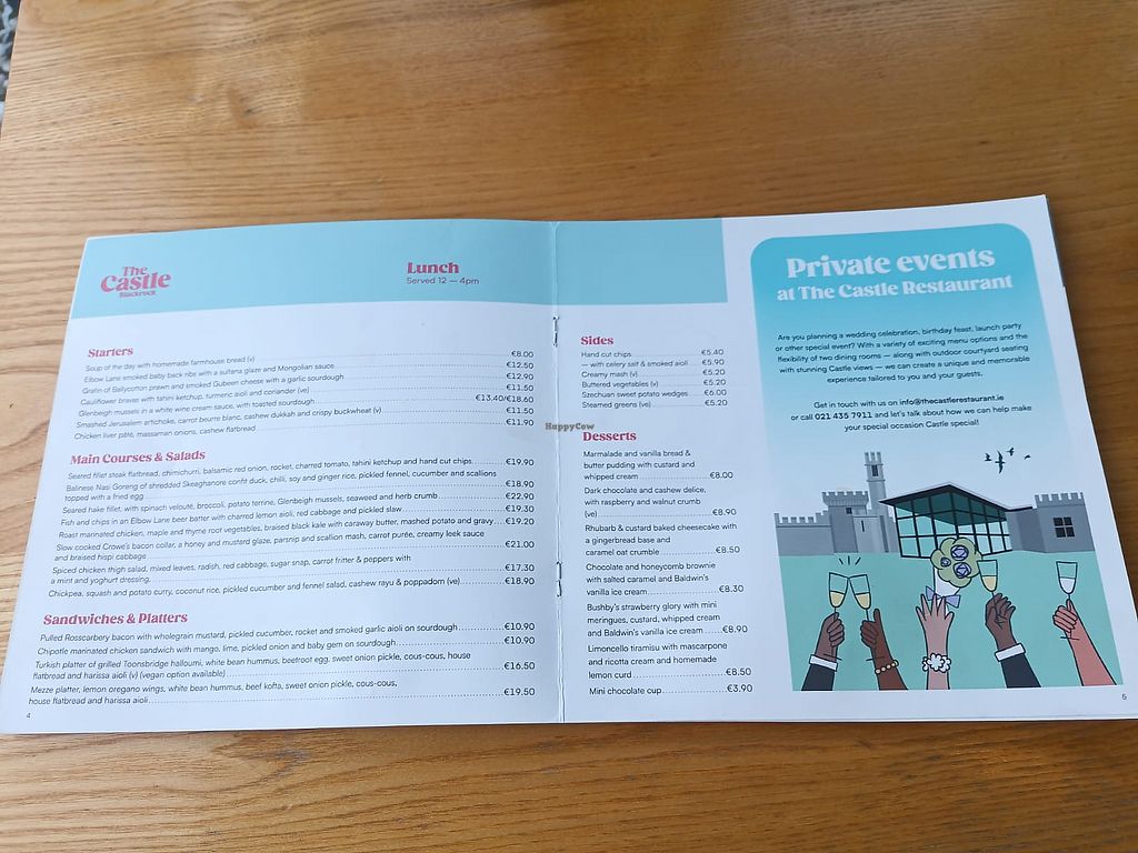 The restaurant is located inside the castle which is a lovely place to eat after a visit. There are 2 vegan options on the menu. I had the salad with the marinated tofu ball and it was really good. I recommend this place if you visit the castle as you can enjoy the inner courtyard of the castle.