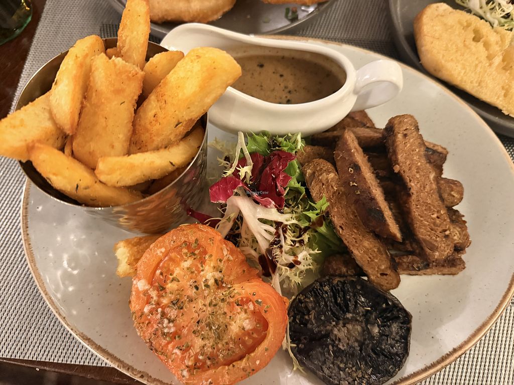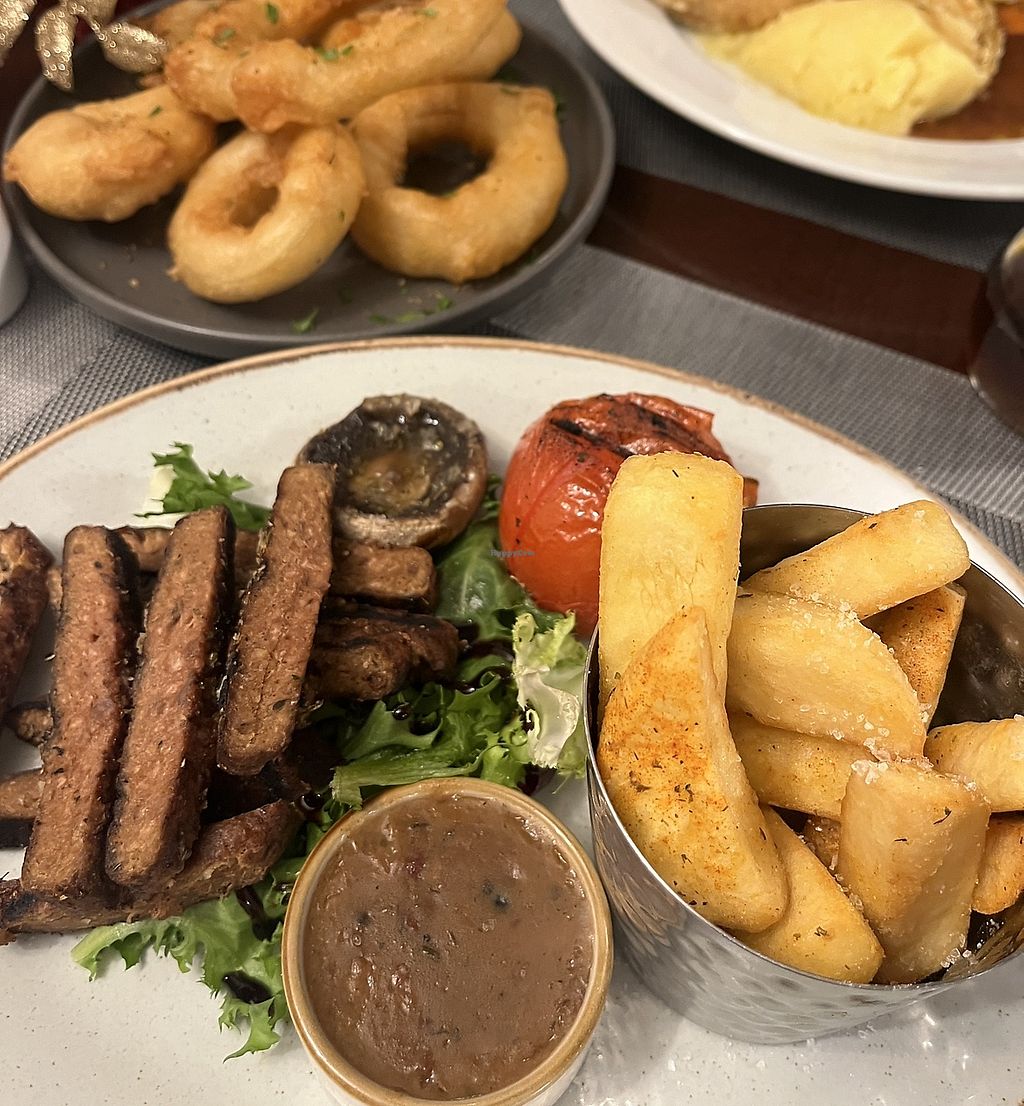 It’s so rare to find a non-vegan pub with so many vegan options - half the menu was vegan with really yummy typical pub meals such as sausages & mash or steak & chips. They also had a good few vegan desserts and milk options. Love staff and good service.