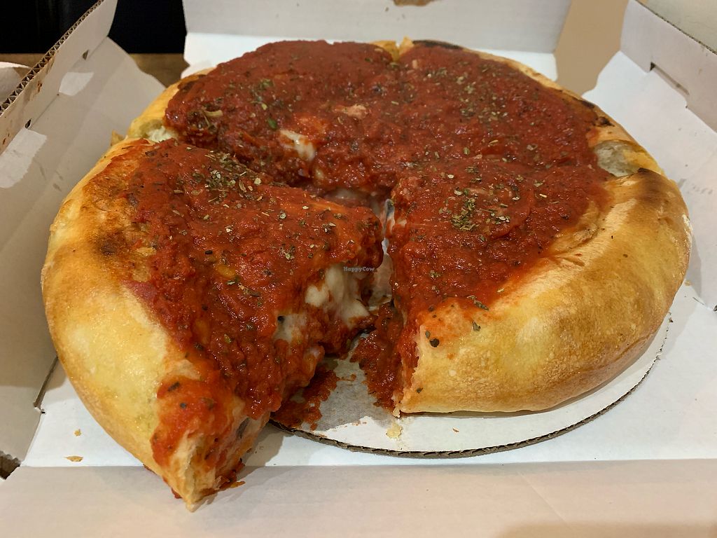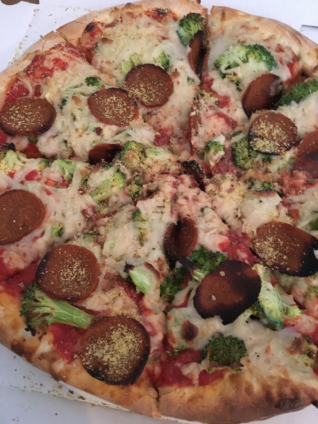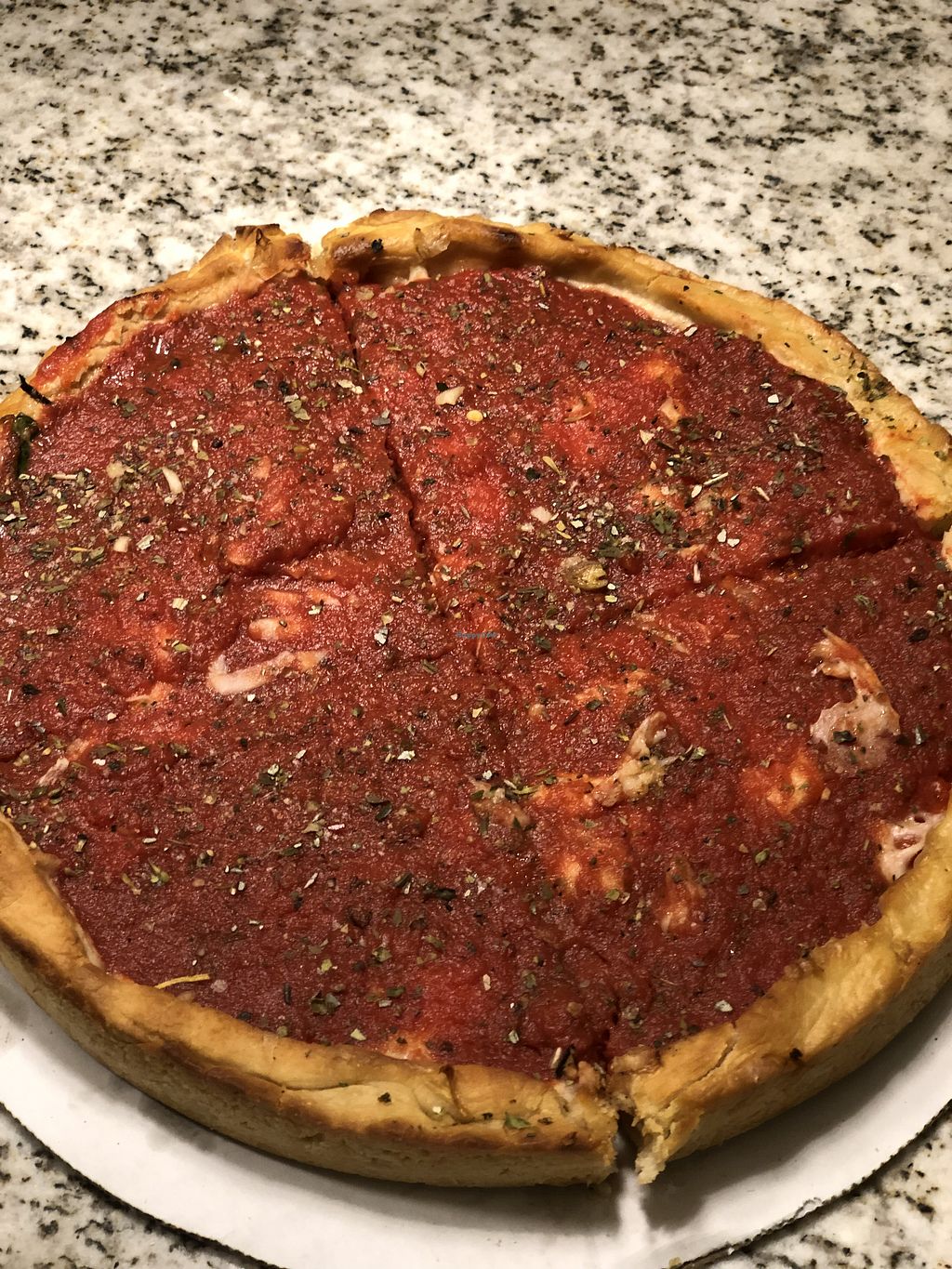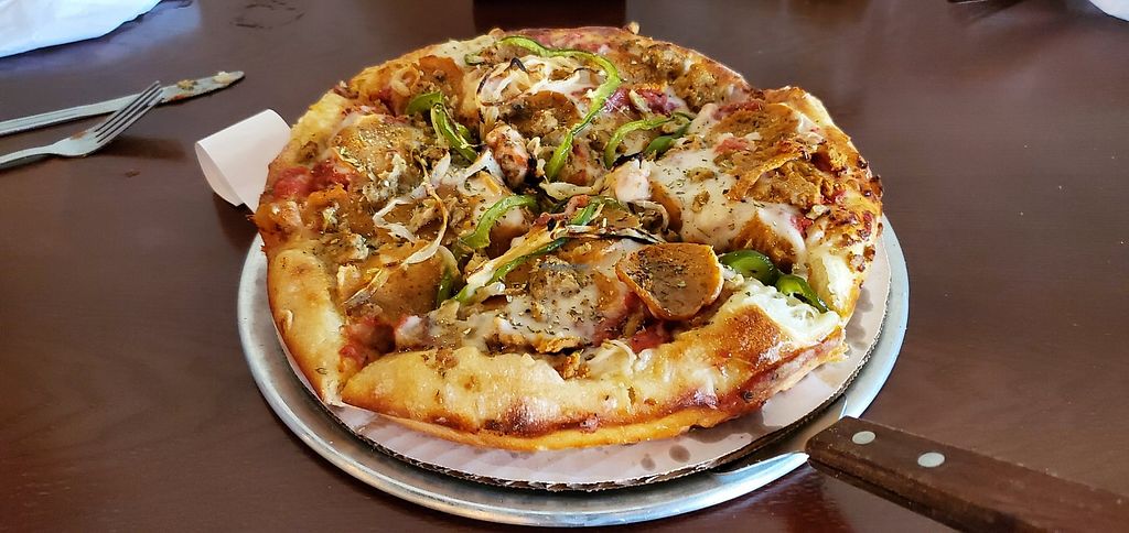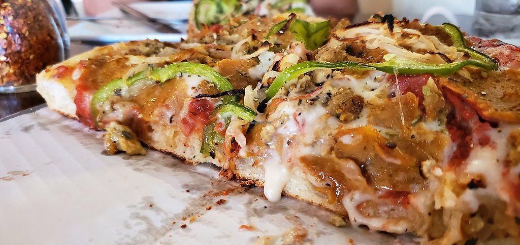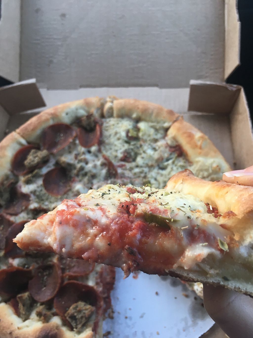 Pan ‘Za - with ‘pepperoni’ and green and black olives