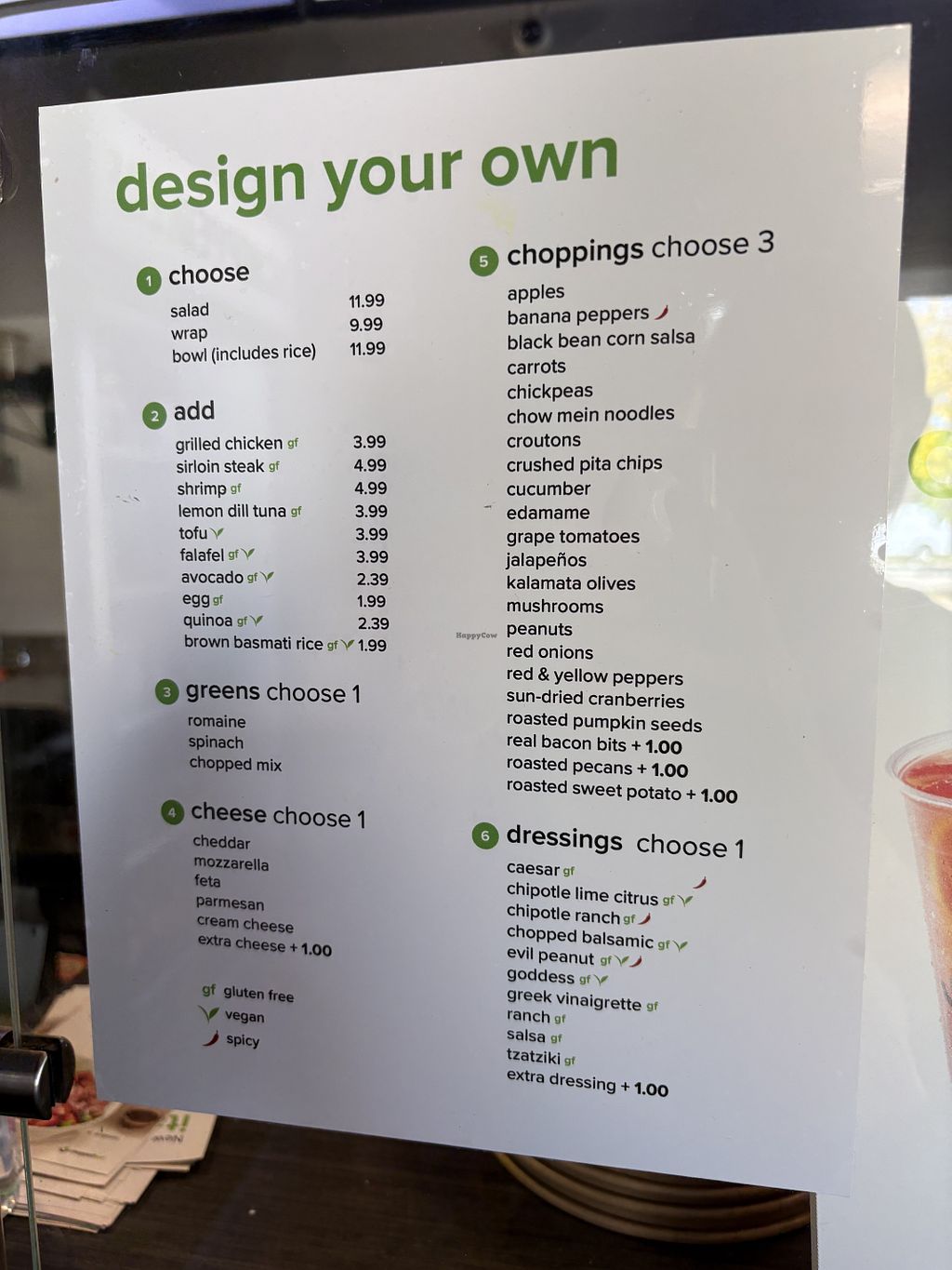 I got a create your own bowl and all the ingredients were fresh and delicious!!! They have several vegan dressings which is awesome and they even have note cards with all the ingredients for prepared items and sauces so I could verify some I wasn’t sure of. It was absolutely wonderful.