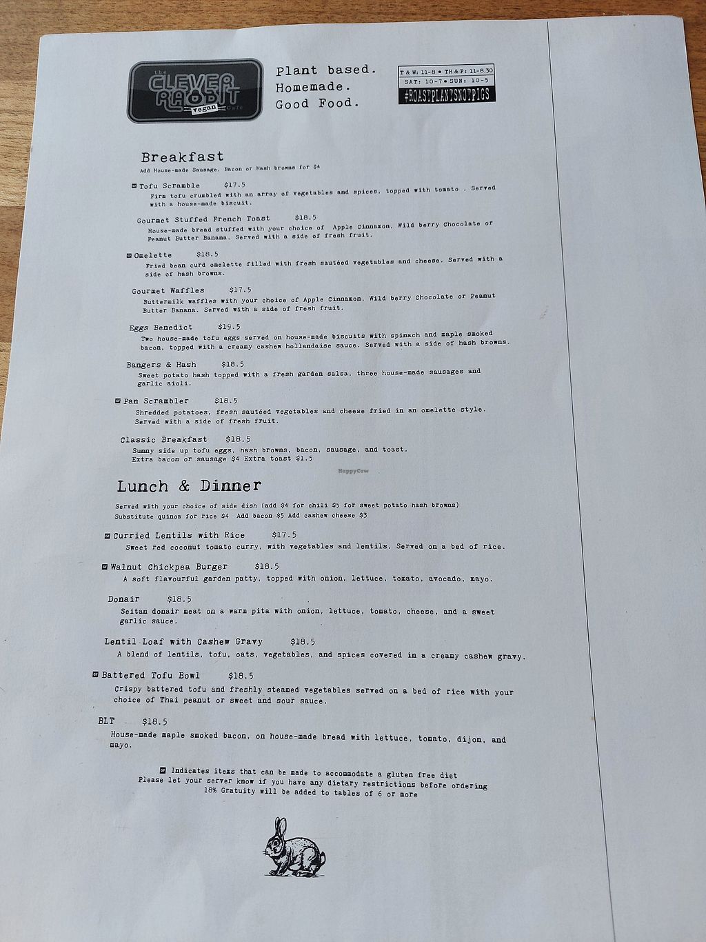 The Clever Rabbit is a cute restaurant with lots of good, tasty vegan meals. The rabbit decor is adorable too.