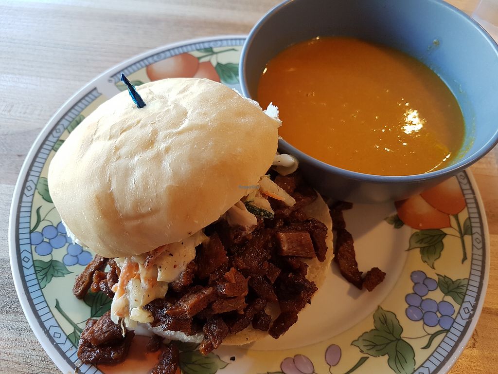 Read moreHad the soup of the day, carrot & ginger and the pulled pork sandwich with coleslaw. Really good!