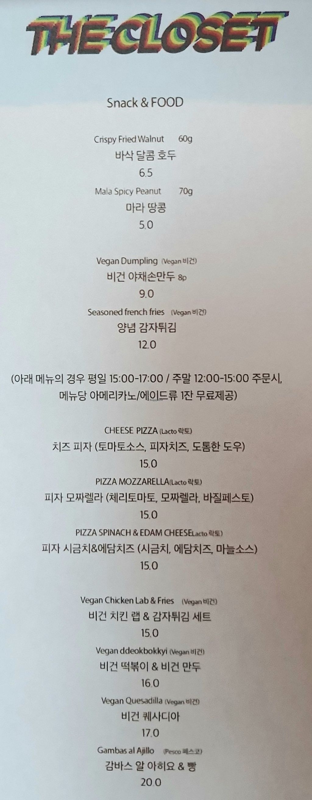 The Closet has a vegetarian- and vegan-friendly menu and is generally welcoming towards diversity. 🌈
