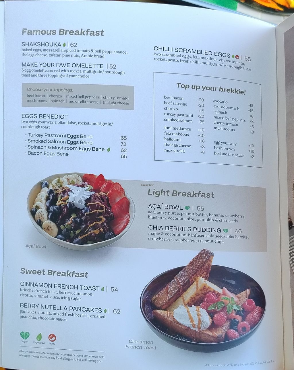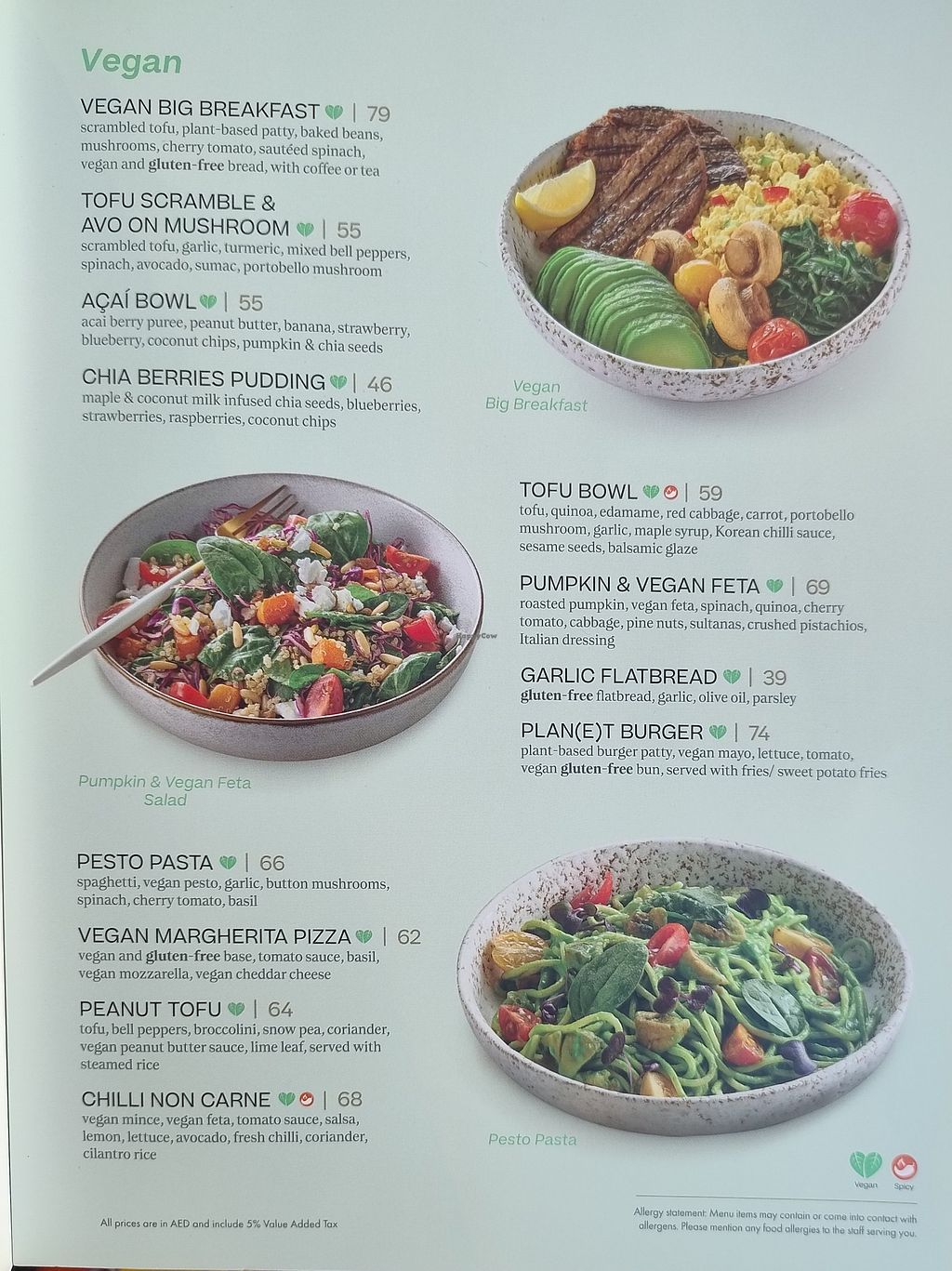 A bit expensive at 60 AED. I took the VEGAN Big Breakfast at 79aed, not a giant portion but it was very good. Three cup of tea included.