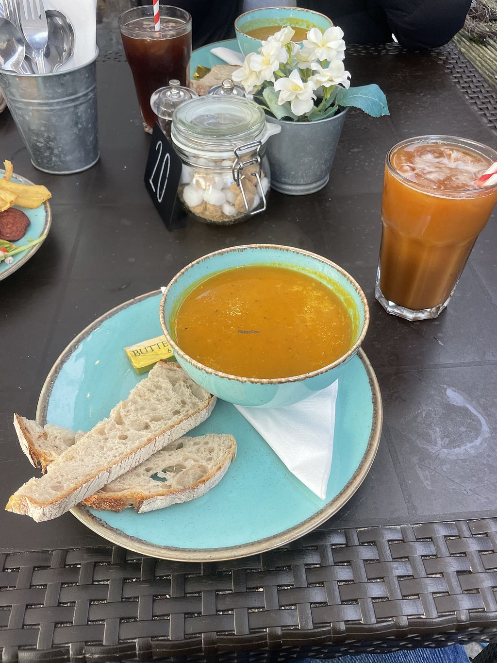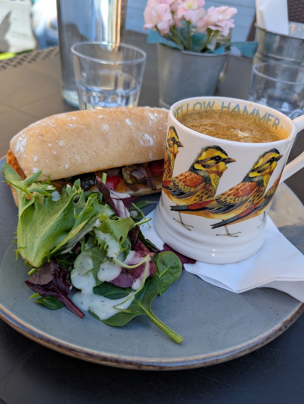 When I asked about the soups, they told me they were all vegan. We had soup and a Portobello sandwich which was also vegan and served with lots of rocket. Good food and nice staff.