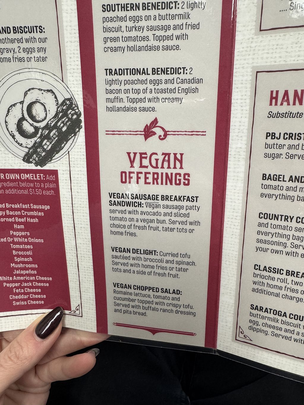 LOVE this place and the owner. She is amazing, so kind and sweet. Only place that makes an effort and has a dedicated menu section for vegans. They have the best juice and jams. Plus cocktails if you’re in the mood! Love it here.