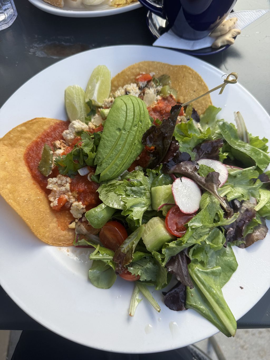 Visited this spot on vacation and it was a “meh” experience. Got the vegan tostada which was very bland. The maple chai latte was yummy.
