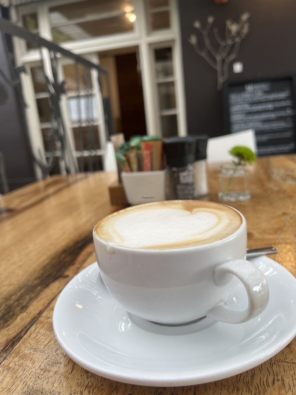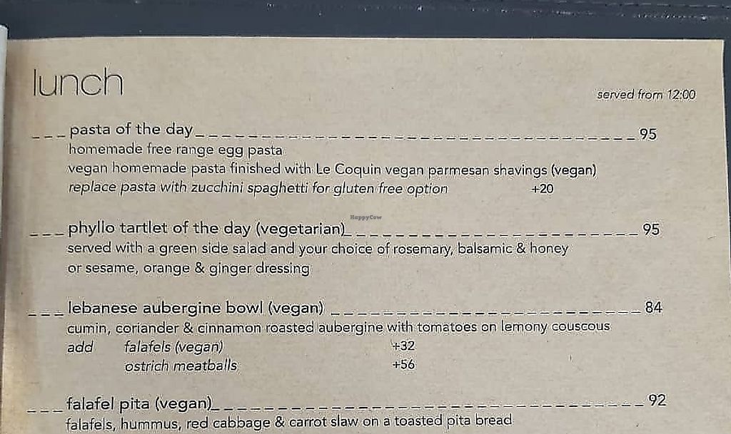 Cute and cozy with a lovely atmosphere. Although not entirely vegan, there were a lot of dishes marked vegan and vegan friendly or easy to make vegan. The staff were very warm and friendly. I had the falafal Vietnamese bowl which was awesome with some red cabbage salad on the side. Some avocado would have been a great addition too, so would definately add that next time. I also enjoyed the apple and walnut crumble with coffee. They did have almond milk for my coffee, which was great!!