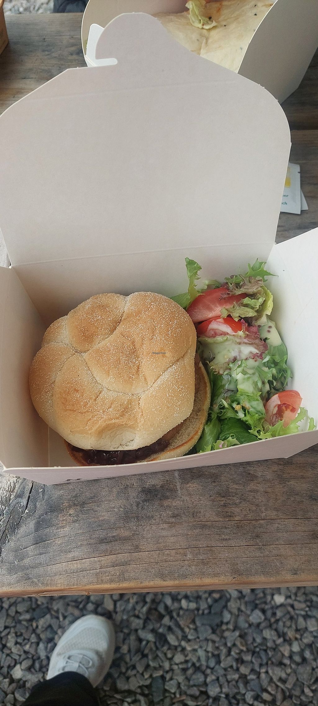 Delicious vegan burger with caramelisedonion relish. Great to have an option at a place that serves seafood, fish and meat so I could eat with my husband who was having fish.