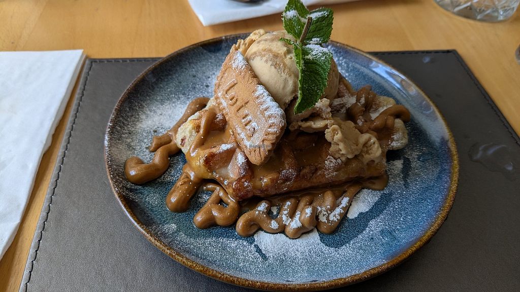 One of us had the veg curry, the other had the bowl. Both really tasty and good portion size. Leave room for the biscoff waffles