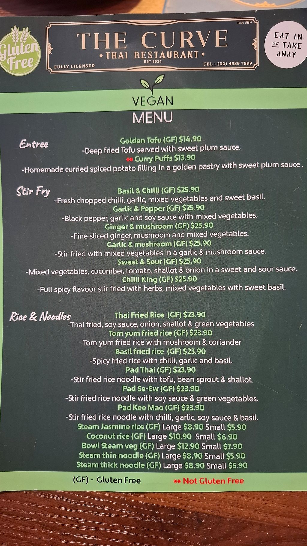 Serves meat, vegan options available. Thai restaurant with separate vegan menu with dishes such as curry puffs, Thai fried rice, pad thai, steam thin noodles, basil fried rice, pineapple fried rice, satay tofu, and more. Open Tue-Sun 11:30am-2:30pm, 5:00pm-9:30pm. Closed Mon.