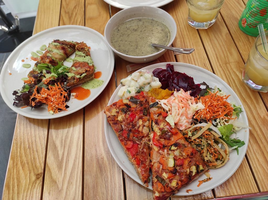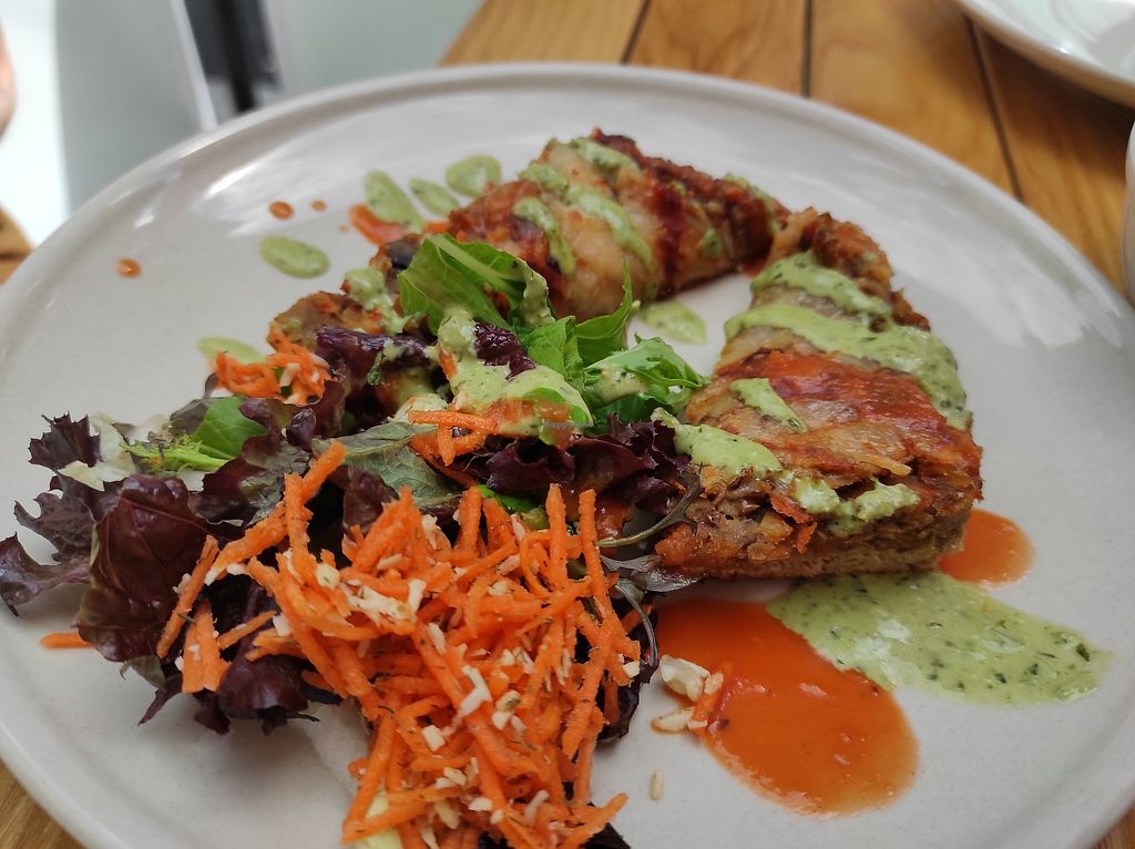 Stromboli, doesn't have much filling and pizza in the background, that…